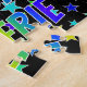 Vibrierende This, fun, birthday-themed jigsaw puzzle design feature the message "HAPPY BIRTHDAY, VALERIE" with the characters having a colorful rainbow spectrum inspirred gradient pattern, along with a lively star shapes background pattern. In Colorful Puzzle like this might be used to send a birthday greeting message to somebody named Valerie. [~ Z0000468]