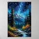 Genießen Sie ein himmlisches Meisterwerk in dieser faszinierenden Szene. Ein Tal zerklingt das Wunder der Natur, als sich ein prächtiger Sternenhimmel entfaltet. Hochwertige schneebedeckte Gipfel umrahmen den Zauber, während ein Kristallbach durch felsiges Terrain tanzt. Eine Symphonie von Elementen, die zu einer zeitlosen Leinwand verwoben sind.