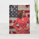 Das Bild zeigt eine selbstbewusste Frau stehend. Eine Kamala Harris sieht vor einer großen amerikanischen Fahne ähnlich aus. Sie ist in einem auffallenden roten Polka Dot Blazer gekleidet, der ihr Aussehen eine lebendige und stilvolle Touch verleiht. Ihre Hände werden auf ihre Hüften gelegt, und sie blickt mit einem komponierten und entschlossenen Ausdruck zur Seite. Die Fahne im Hintergrund mit ihren US Flagge bildet einen patriotischen Hintergrund und betont Themen wie Nationalstolz und Führungsstärke. Die Gesamtkomposition des Bildes vermittelt Stärke, Zuversicht und einen Sinn für Zweck.