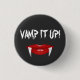 "Vamp it up!" lustige Slogan Halloween-Button mit großen hellen roten Lippen und Reißzähne Bild.