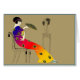 Vintage Illustration, Mädchen im mehrfarbigen Kleid.
