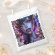 Hübscher lila Vampir mit goldenen Reißzähnen und Augen Halloween-Party Gefälligkeiten.