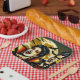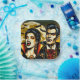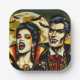 Teller aus Halloween-Party. Er und ihre Vampire mit einem Vollmond Hinterland mit Fledermäusen Comic Buch Pop ai art. Cool für Halloween oder für jeden, der Vampire Lieben..