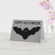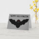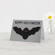Diese beängstigende Halloween-Karte enthält eine gruselige Vampirfledermütze mit bösen roten Augen und scharfen weißen Reißzähnen. Dieses lustige Design ist perfekt zu Halloween und sollte Kinder und Erwachsene gleichermaßen begeistern. Auf der Vorderseite der Karte befindet sich ein individualisierbarer Gruß. Die Innenseite der Karte ist leer.