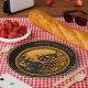 Niedliche Halloween-Papier-Teller, die dich dazu bringen, "für einen schnellen Biss einzufallen" - die schwarze Vampirkatze mit Hexenhut und beängstigende Kürbisse und Spinnennetze tragen zum "beängstigenden" bei. Personalisieren Sie mit Ihrem eigenen Text, verlasse wie besehen, oder löschen Sie, um leer verlassen.