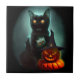 Vampire Cat and Wizard Pumpkin Halloween Surreal Fliese