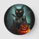 Vampire Cat and Wizard Pumpkin Halloween Surreal Runde Wanduhr