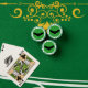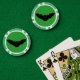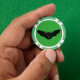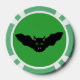 Dieses phantastische Set von Poker-Chips verfügt über eine gruselige Vampirfledermaus mit dem Gesicht einer Katze. Die Fledermaus fliegt mit ausgestreckten Flügeln und hat die bösen grünen Augen einer gruseligen Katze und einige beängstigende weiße Reißzähne. Diese gruselige Chimäre ist das perfekte Geschöpf für ein heimliches Halloween.