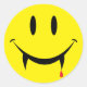 Vampire Face Aufkleber. Nehmen Sie Ihr gewohnt hellgelbes Gesicht und fügen Sie Vampirzähne mit einem Tropfen Blut von einem von ihnen. Dieser Vampiraufkleber ist sicherlich eine andere Einstellung auf der Standardfläche.