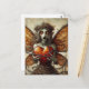 Eine beängstigende Vampir-Fee hält ein orangefarbenes Herz, umhüllt in Klammern.