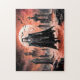 dunkler Vampir steht in einem unheimlichen Friedhof unter Vollmond, umgeben von Fledermäusen und einer Spuk Burg im Hintergrund.