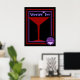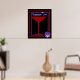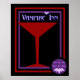 Lila Vampir-Poster in blutrot und königlich mit Cocktailglas und Party-Fledermäusen.