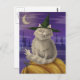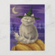 Grafisches Design einer flauschigen Katze mit einer Hexe spitzen Hut und Vampirzähne.