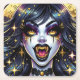 Halloween-Party Untersetzer... Weibliche Vampir mit goldenen Augen und Zähnen und Glitzern in ihren Haaren. Goldzähne, blasse Haut. Cool für Halloween oder jemand, der Vampire Lieben.