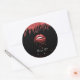 Editierbare Halloween Vampirlippen und Reißzähne rund Aufkleber. Design zeigt rote Lippen tropfen mit Blut und Vampirzähne auf einem schwarzen Hintergrund! Glamouröser roter Glitzer und Glitzern zieren die untere Hälfte des Aufklebers. Personalisieren Sie den Text und ändern Sie den Stil und die Farbe des Schriftartes in Anzug. Setzen Sie den Text gegebenenfalls mit dem Entwurfstool um und entfernen Sie ihn. Der Glitzer ist kein "echter" Glitzer, sondern ein Druckeffekt.