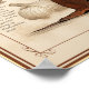 A creature called 'Vampurr,' a cat-like vampire. The creature has large, bat-like ears with orange interiors, big eyes, and small fangs. It wears an orange cape with a pentagram pendant. The background resembles a page from a bestiary, with sketches and descriptions of garlic, silver cross, and catnip as countermeasures. Perfect gift for cat lovers.