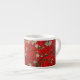 Espresso Cup mit Vincent van Goghs Ölgemälde Almond Blossoms (1890) in Rot. Ein Mandelbaum blüht weiße Blume vor einem roten Himmel. Ein großartiges Geschenk für die Fans von Impressionismus und holländischer Kunst.