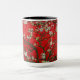 Tasse mit dem Ölgemälde von Vincent van Gogh (1890) in Rot. Ein Mandelbaum blüht weiße Blume vor einem roten Himmel. Ein großartiges Geschenk für die Fans von Impressionismus und holländischer Kunst.