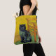 Tote Bag mit einer schwarzen Katze im Stil von Van Gogh! Dieses schwarze Kätzchen sitzt neben einem Stuhl auf einem grünen Fußboden, der von der Dekoration der Starry Night geprägt ist. Ein fabelhaftes Geschenk für Katzenliebhaber und holländische Kunstsammler!