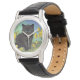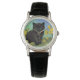 Watch mit einer schwarzen Katze im Stil von Van Gogh! Ein flauschiges schwarzes Kätzchen sitzt neben gelben Blumen auf einem grünen und blauen Hintergrund. Ein lustiges Geschenk für Katzenliebhaber und holländische Kunstsammler!