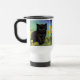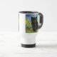 Travel Mug mit einer schwarzen Katze im Stil von Van Gogh! Ein flauschiges schwarzes Kätzchen sitzt neben gelben Blumen auf einem grünen und blauen Hintergrund. Ein lustiges Geschenk für Katzenliebhaber und holländische Kunstsammler!