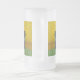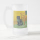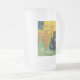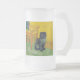 Mattierte Glass Beer Tasse mit einer schwarzen Katze im Stil von Van Gogh! Dieses schwarze Kätzchen sitzt neben einem Stuhl auf einem grünen Fußboden, der von der Dekoration der Starry Night geprägt ist. Ein fabelhaftes Geschenk für Katzenliebhaber und holländische Kunstsammler!