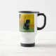 Travel Mug mit einer schwarzen Katze im Stil von Van Gogh! Dieses schwarze Kätzchen sitzt neben einem Stuhl auf einem grünen Fußboden, der von der Dekoration der Starry Night geprägt ist. Ein fabelhaftes Geschenk für Katzenliebhaber und holländische Kunstsammler!