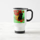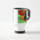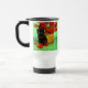 Travel Mug mit einem schwarzen Kätzchen im Stil von Van Gogh! Ein niedliches Kätzchen sitzt neben einer Vase mit roten Blume. Die grüne Wand und der Boden verleihen dem Ganzen ein frühlingshaftes Ambiente. Ein fantastisches Geschenk für Katzenliebhaber und holländische Kunstsammler!