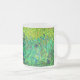 Mattierte Glass Coffee Tasse mit Vincent van Gogh’s Ölmalerei Field mit Irises Near Arles (1888). Die goldgelben Felder in Arles, Frankreich, sind mit schönen blauen Reisen geschmückt. Ein wunderbares Geschenk für Liebhaber des Post-Impressionismus und niederländische Kunstsammler!