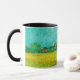 Tasse des Kaffees mit Vincent van Gogh’s Ölmalerei Field mit Iren in der Nähe von Arles (1888). Die goldgelben Felder in Arles, Frankreich, sind mit schönen blauen Reisen geschmückt. Ein wunderbares Geschenk für Liebhaber des Post-Impressionismus und niederländische Kunstsammler!
