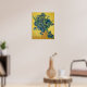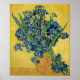 "Iris" (Mai 1889) von Vincent van Gogh zeigt ein schönes Stillleben eines lebhaften Blumenstraukts in einer gelben Vase. Der Hintergrund ist hell und freundlich gelb und bildet einen auffallenden Kontrast zu den tiefblauen Farbtönen der Blume. Die Reize in verschiedenen Blautönen bilden den Mittelpunkt der Komposition, ihre zarten Blütenblätter entfalten sich in voller Blüte. Die Vase selbst, ein schlichter, aber eleganter gelber Behälter, hebt die lebhaften Farben der Blume weiter hervor. Die Gesamtkomposition spiegelt Van Gogh's charakteristisches, gewagtes Bürstenwerk und eine lebhafte Farbpalette wider, die durch dynamische Kontraste die Schönheit der Natur hervorhebt.