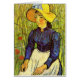 Die junge Bauernfrau mit Strohhut, die von Vincent van Gogh im Weizen sitzt, ist ein Vintages Portraitgemälde aus Post-Impressionismus, in dem eine junge Frau einen Strohhut mit blauem Bogen trägt und im Frühjahr auf einer Wiese mit blühenden Blume aus rotem Mohn sitzt. Über den Künstler: Vincent Willem van Gogh war ein postimpressionistischer Maler, dessen Werk durch seine raue Schönheit, emotionale Ehrlichkeit und seine kühne Farbe besonders bemerkenswert war.