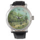 Uhr, Klassische Damenuhr mit schwarzen Lederarmband