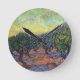 Van Gogh Olive Grove mit Orange Sky Runde Wanduhr