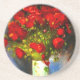 Sandstein Untersetzer mit Vincent van Goghs Ölmalerei Vase mit Pfeffer (1886). Die herrlichen roten Mohnblumen sind in einer weißen Vase vor blauem Hintergrund angeordnet. Ein großartiges Geschenk für die Fans von Post-Impressionismus und holländischer Kunst.