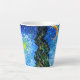 Latte Tasse mit Vincent van Gogh's Ölmalerei Road mit Cypress und Star (1890), auch bekannt als Country Road in Provence by Night. Die Leute laufen an einer Straße vorbei an einem schönen Zypressenbaum unter einem blauen Nachthimmel mit gelbem Mond und Sternen. Ein fantastisches Geschenk für die Fans von Post-Impressionismus und holländischer Kunst.