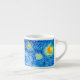 Espresso Cup featuring Vincent van Gogh’s oil painting The Starry Night (1889). Inspired by his stay at an asylum, the art depicts a village underneath a night sky of blue and yellow moon and stars. A great gift for fans of Post-Impressionism and Dutch art.