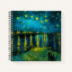 Notebook mit Vincent van Gogh Ölgemälde Starry Night Over the Rhône (1888). Die blauen Sterne schmücken den blauen Nachthimmel, indem sie ein paar Spaziergänge entlang eines Flusses in Arles unternehmen. Ein perfektes Geschenk für Fans von Post-Impressionismus und holländischer Kunst.