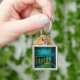 Schlüsselanhänger mit Vincent van Goghs Ölgemälde Starry Night Over the Rhône (1888). Die blauen Sterne schmücken den blauen Nachthimmel, indem sie ein paar Spaziergänge entlang eines Flusses in Arles unternehmen. Ein perfektes Geschenk für Fans von Post-Impressionismus und holländischer Kunst.