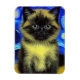 Magnet mit einer siamesischen Katze in Van Gogh's Gemälde Starry Night! Diese flauschig schöne Pose vor einem blauen Nachthimmel mit leuchtenden Mond und Sternen. Ein gemütliches Geschenk für Katzenliebhaber und holländische Kunstsammler!