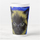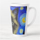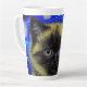 Latte Tasse mit einer Siamkatze in Van Gogh's Gemälde Starry Night! Diese flauschig schöne Pose vor einem blauen Nachthimmel mit leuchtenden Mond und Sternen. Ein gemütliches Geschenk für Katzenliebhaber und holländische Kunstsammler!