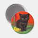 Magnet mit einer schwarzen Katze im Van Gogh-Stil! Dieses schöne Kätzchen liegt wunderschön neben Sonnenblumen auf einem grünen Boden an einer roten Wand. Ein niedliches Geschenk für Katzenliebhaber und holländische Kunstsammler!