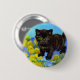 Button mit einer Van Gogh-Katze mit Sonnenblumen! Ein hübsches, schwarzes Kätzchen mit Posen und gelben Blumen. Ein fabelhaftes Geschenk für Katzenliebhaber und holländische Kunstsammler!