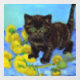 Window Cling mit einer Van Gogh Katze mit Sonnenblumen! Ein hübsches, schwarzes Kätzchen mit Posen und gelben Blumen. Ein fabelhaftes Geschenk für Katzenliebhaber und holländische Kunstsammler!