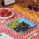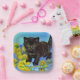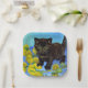 Papier Teller mit einer Van Gogh-Katze mit Sonnenblumen! Ein hübsches, schwarzes Kätzchen mit Posen und gelben Blumen. Ein fabelhaftes Geschenk für Katzenliebhaber und holländische Kunstsammler!
