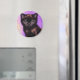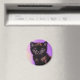 Magnet mit einer Van Gogh-Katze mit lila Hintergrund. Dieses schwarze Kätzchen sieht den Betrachter hübsch an! Ein tolles Geschenk für Katzenliebhaber und holländische Kunstsammler!