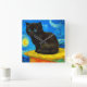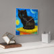 Uhr mit einer Van Gogh Katze im Stil der Starry Night! Ein flauschiges schwarzes Kätzchen sitzt auf einem Tisch gegen einen blauen Nachthimmel und einen gelben Mond. Ein puristisches Geschenk für Katzenliebhaber und holländische Kunstsammler!