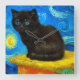 Van Gogh Style Starry Night Cat Quadratische Wanduhr