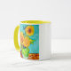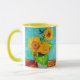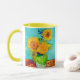 Tasse mit Vincent van Goghs Stillleben-Gemälde, die einen Blumenstrauß in einer grünen Vase darstellen. Ein Teil seiner ersten Version in der Arles Sunflowers Serie. Ein großartiges Geschenk für die Fans des Post-Impressionismus, Blume Gemälde und niederländische Kunst.
