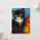 Karte mit einer schönen Van Gogh tuxedo Katze! Diese kleine Pose neben einem Korb orangefarbener Blume auf einem roten Tisch. Ein tolles Geschenk für Katzenliebhaber und holländische Kunstsammler!